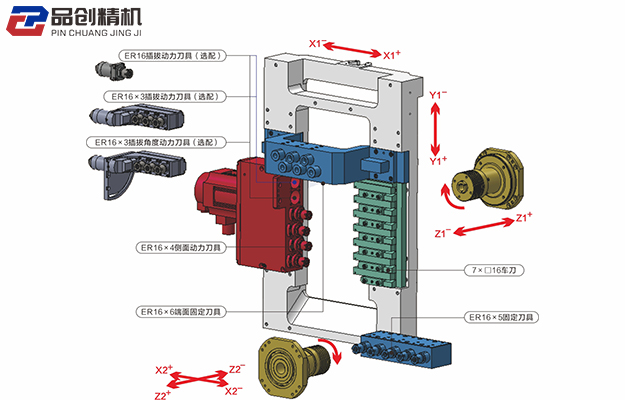 2.主軸側面動力刀具:4×ER16